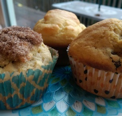 Mix together 1/4 cup sugar and 3/4 teaspoon cinnamon. Dip the tops of warm muffins in the melted butter and then the cinnamon sugar mixture.